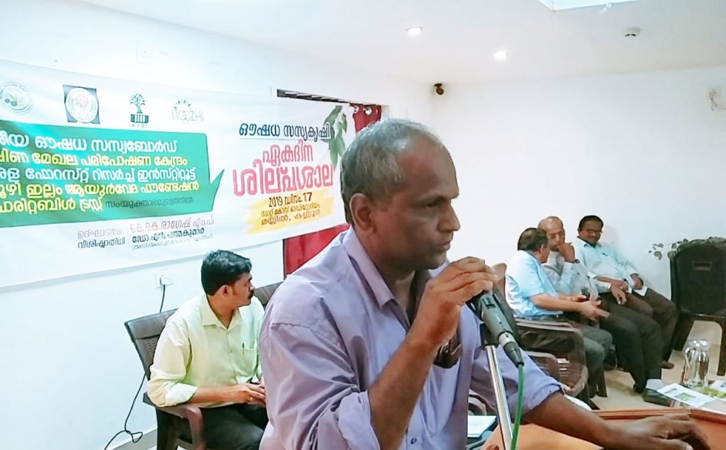 Member of Parliament, Shri K K Rajesh who inaugurated the workshop, spoke at length about passing information to public about the importance of medicinal plants cultivation and sensitivising everyone about the value of these plants. He even earmarked year 2020 as year of educating the public about this and insisted everyone to recognise and promote 20 such plants for use of future generations.