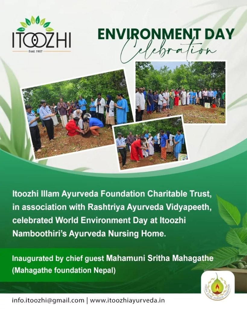Itoozhi Illam Ayurveda Foundation Trust in association with Rashtriya Ayurveda Vidyapeeth, celebrated World Environment Day 2024 at Itoozhi Namboothiri’s Ayurveda Nursing Home.