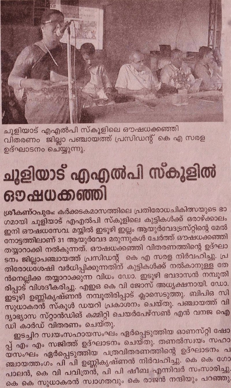 Itoozhi Ayurveda Foundation’s Oushadha Kanji project for School children, launched in 2012 was accorded the same rousing reception this year too, and we are happy to say that the district administration has taken note of it and has put forth a vision to extend it to all the schools in the district from next year.