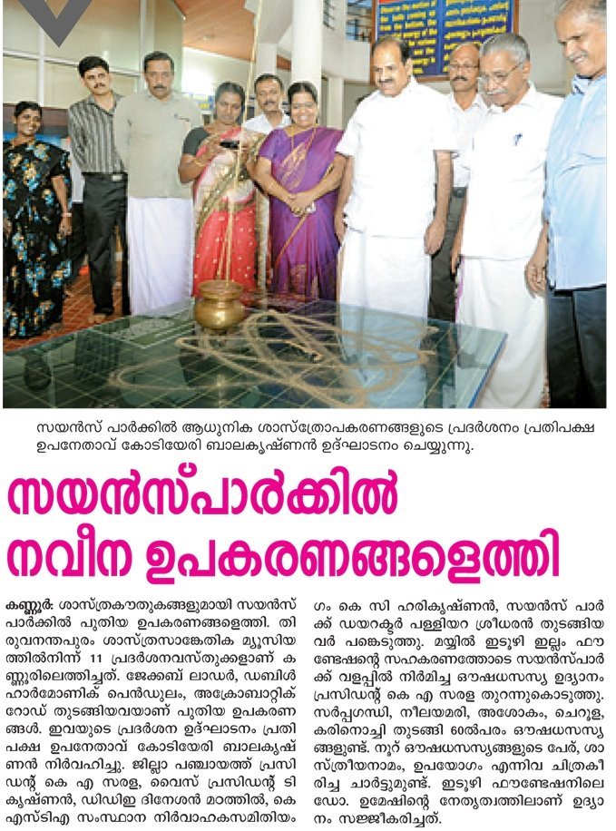 Kodiyeri Balakrishnan visited the Uppod Kannan Memorial Park, instituted and maintained by the Itoozhi Ayurveda Foundation, adjacent to the Science Park, Kannur, on February 9, 2014.